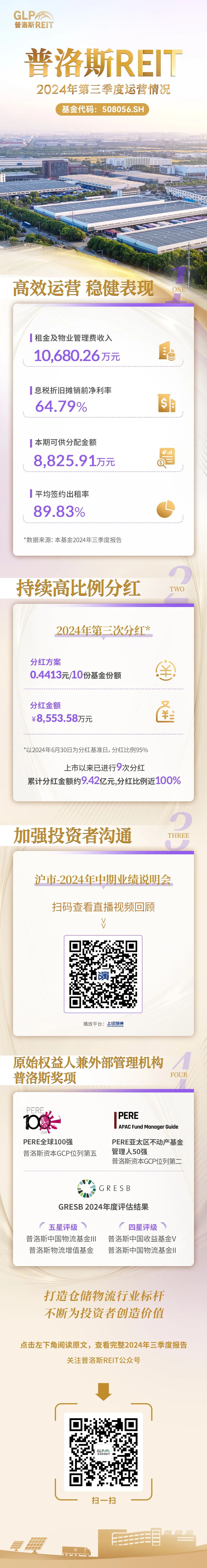 图说|普洛斯REIT2024年第三季度运营情况