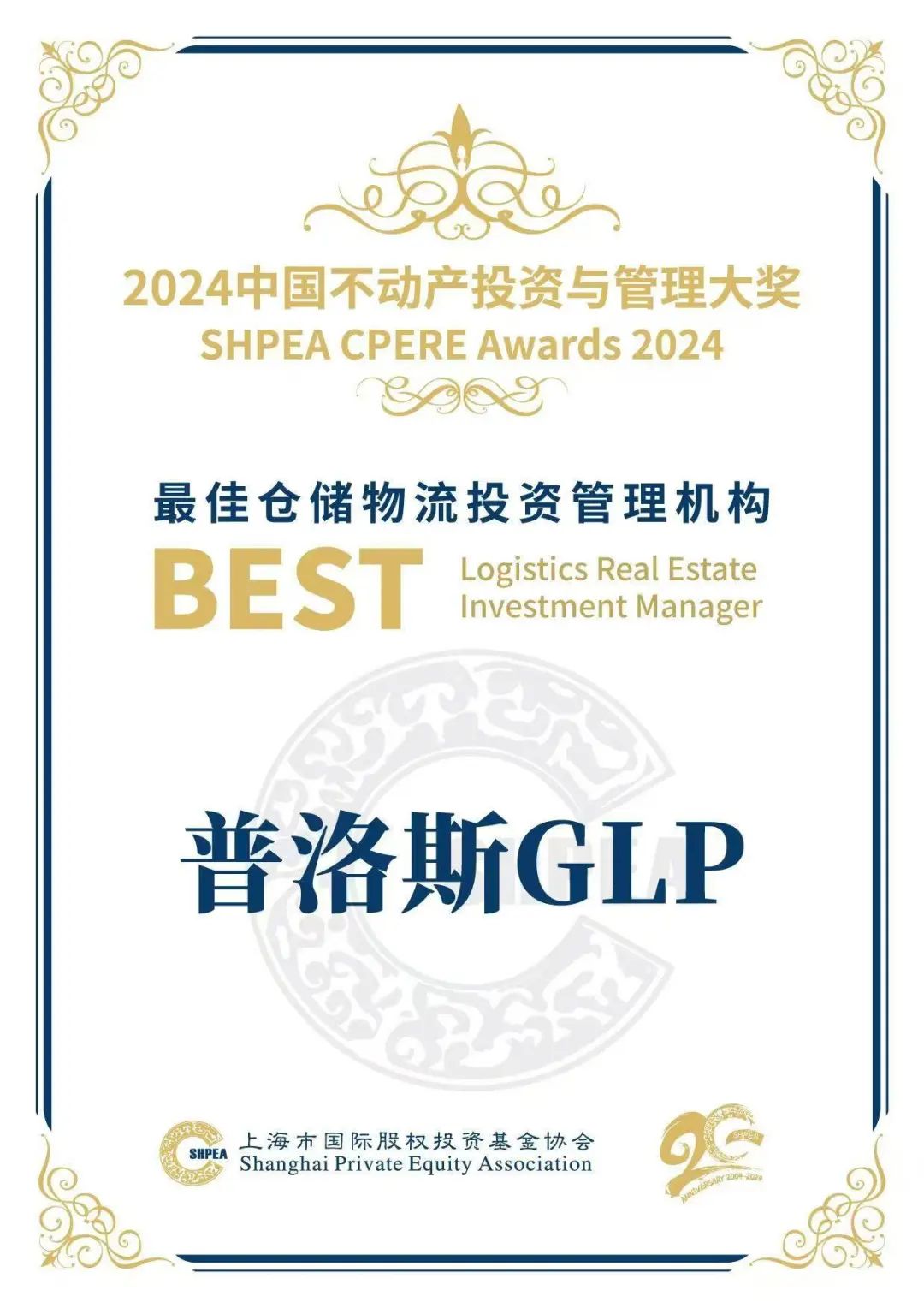 12月13日,在上海市国际股权投资基金协会(SHPEA)主办的“2024年第二届中国不动产基金投资管理年会”上,普洛斯凭借卓越的资产投资与运营管理表现,斩获“SHPEA 2024年中国不动产投资与管理奖”榜单中“最佳不动产资产管理机构”、“最佳仓储物流投资管理机构”、“最佳REITs资产管理机构”和“最佳ESG投资管理机构”四项大奖。